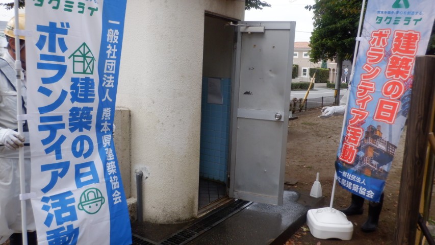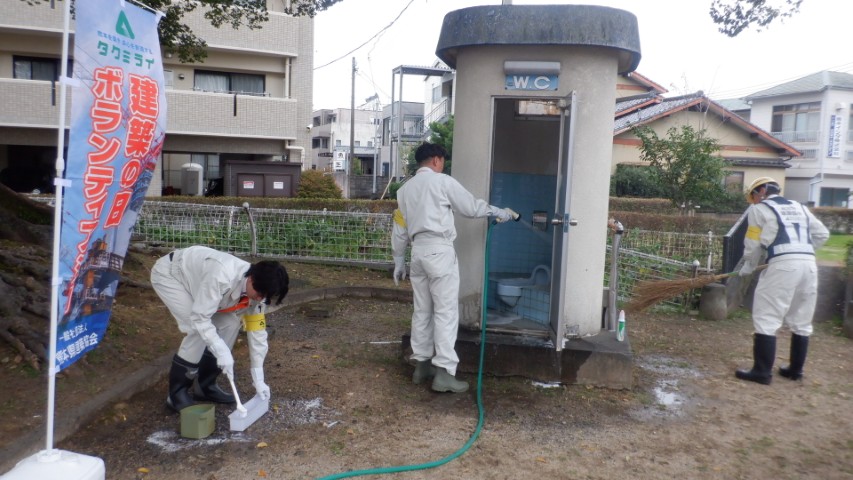 私達も日頃の建設業界へのご協力の感謝の気持として熊本県建築協会主催により公共のトイレ清掃と献血ボランティアに参加いたしました。