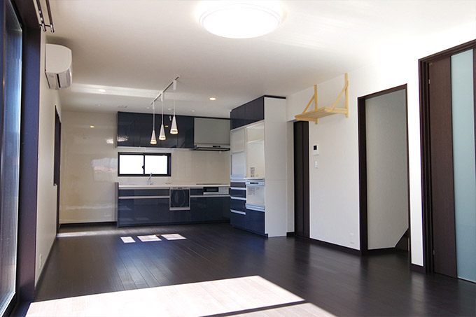 お二人の好みの濃いめの色調でまとめられた床材や家具類は、今風の仕上がりですが、品良くまとまりました。