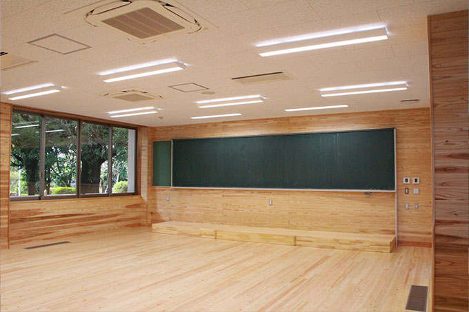 一期工事は、北校舎をメインとした、内外装改修工事(躯体以外全て改修)になります。外壁もきれいに塗装し直し、教室内部も木質化を行い、温もりある仕上がりになっております。